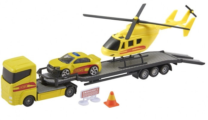 AS Teamsterz Οχήματα Emergency Heli Transporter Σετ οχήματα νταλίκα, ελικόπτερο και αυτοκίνητο, μαζί με αξεσουάρ για ατελείωτο παιχνίδι!