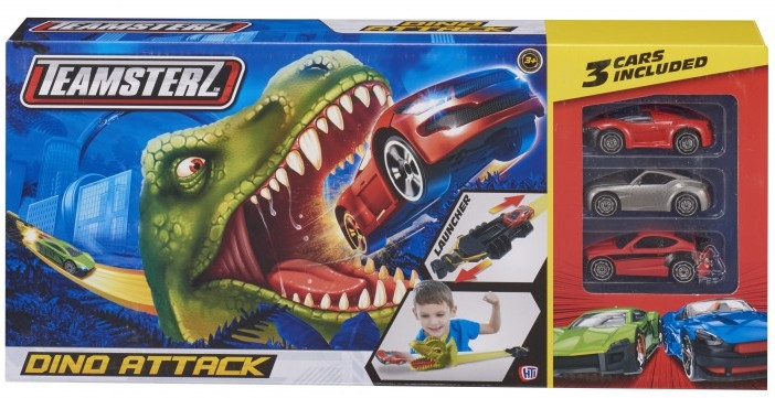 As Teamsterz Πίστα Dino Attack Με 3 Αυτοκίνητα Πίστα Dino Attack για ατελείωτο παιχνίδι! Εκτοξεύστε τα αυτοκίνητα τοποθετώντας τα πάνω στον εκτοξευτή και δείτε τα να πετάνε μέσα από τα ανοιχτά σαγόνια του Dino! Το προϊόν ενδέχεται να διαφέρει ελάχιστα με αυτό στις φωτογραφίες.