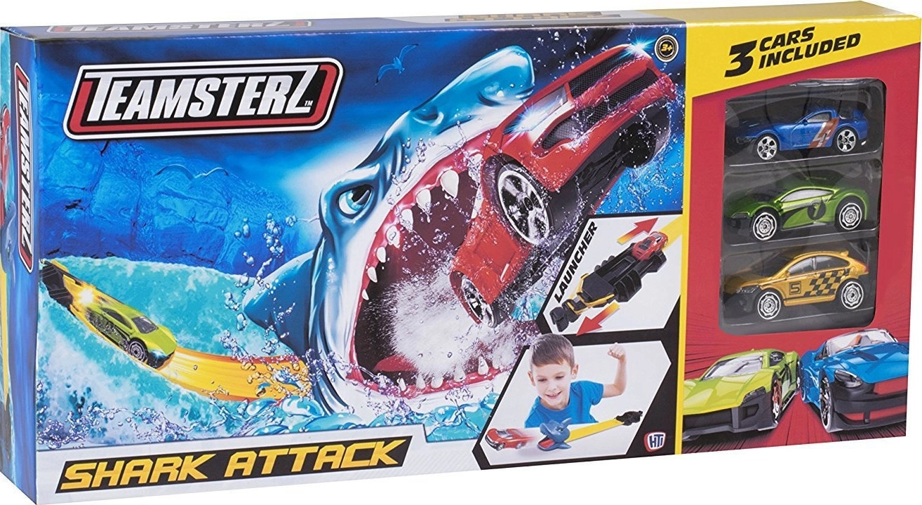AS Teamsterz Πίστα Shark Attack Με 3 Αμάξια Πίστα Shark Attack για ατελείωτο παιχνίδι! Εκτοξεύστε τα αυτοκίνητα τοποθετώντας τα πάνω στον εκτοξευτή και δείτε τα να πετάνε μέσα από τα ανοιχτά σαγόνια του Καρχαρία Περιλαμβάνει 3 μεταλλικά αυτοκινητάκια. Συμβατή με αυτοκινητάκια 3″.