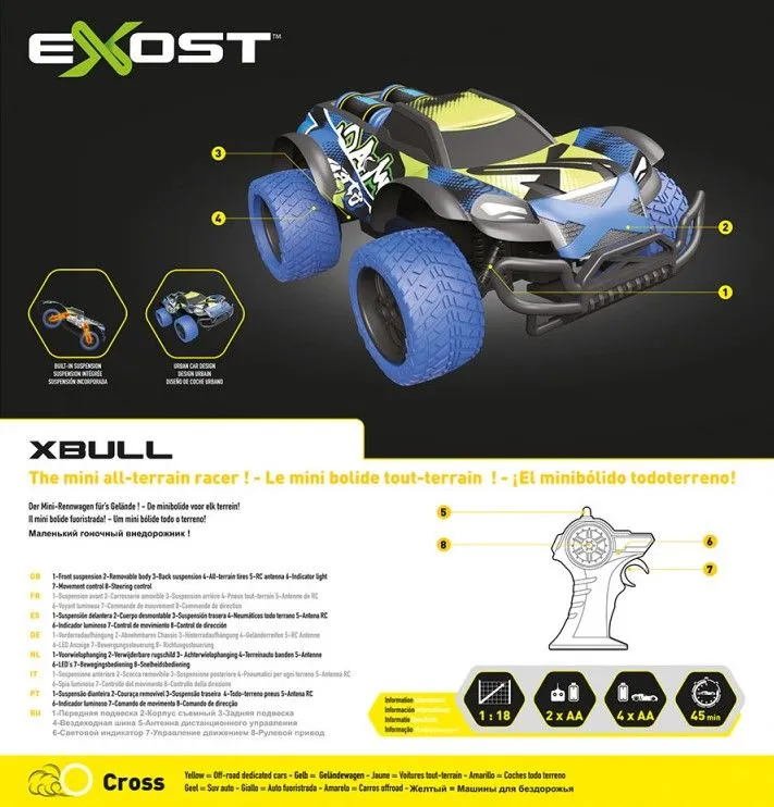 Τηλεκατευθυνόμενο Αυτοκίνητο Exost 1:18 XBull Μοναδικό τηλεκατευθυνόμενο αυτοκίνητο X-Bull από την Exost, ο απόλυτος δρομέας παντός εδάφους! Ένα τηλεκατευθυνόμενο αυτοκίνητο ικανό να διασχίσει όλα τα εδάφη, με ενσωματωμένη ανάρτηση, πρόσθετο προφυλακτήρα, ελαστικά παντός εδάφους και αποσπώμενο πάνω αμάξωμα. Εξοπλισμένο με τεχνολογία 2.4Ghz για αγώνα ενάντια σε πολλαπλούς αντιπάλους! Λειτουργίες και…