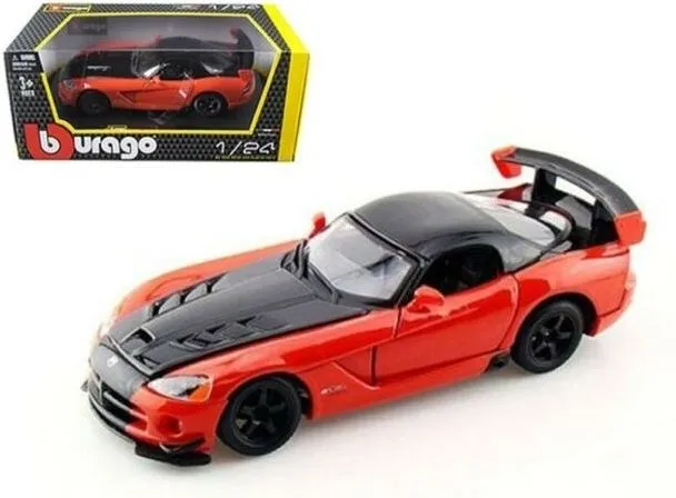 Bourago 1:24 Dodge Viper Srt 10 Acr Orrange Μεταλλική μινιατούρα, πιστό αντίγραφο του πραγματικού σε κλίμακα 1/24. Με εξαιρετική λεπτομέρεια στο σχεδιασμό του, ανοιγοκλείνουν οι πόρτες και διαθέτει λειτουργικό τιμόνι.