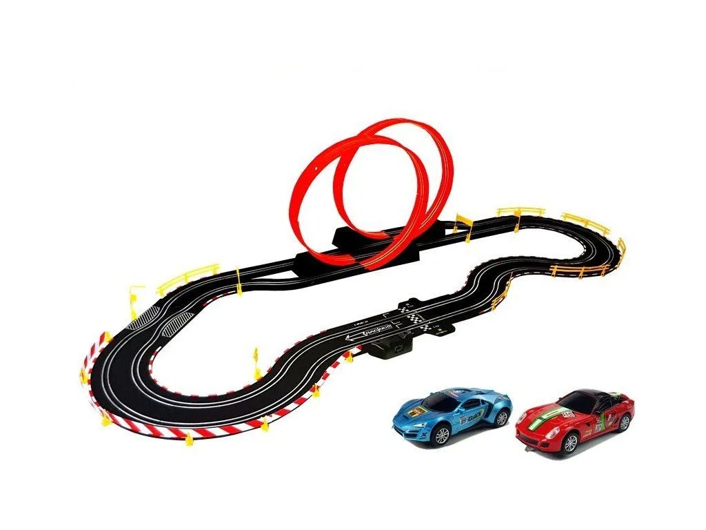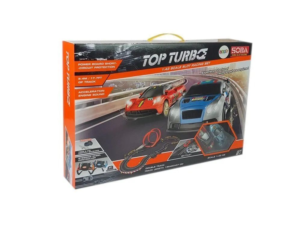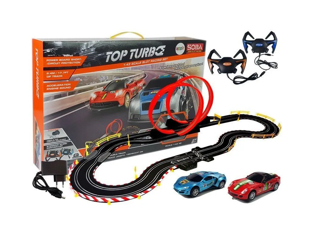 Αυτοκινητόδρομος Ρεύματος Με 2 Αυτοκινητα, Τηλεχειριστήρια 156x60x37 εκ. Η μεγάλη πίστα Top Turbo περιέχει 2 σπορ αυτοκίνητα (μπλε και κόκκινο). Μπορείτε να αγωνιστείτε ταυτόχρονα και να ενεργοποιήσετε ηχητικά εφέ χρησιμοποιώντας δύο χειριστήρια. Η κλίμακα του αυτόματου στίβου είναι 1:43. Τα αυτοκίνητα-παιχνίδια τροφοδοτούνται από το καλώδιο USB που περιλαμβάνεται Ο ελεγκτής…