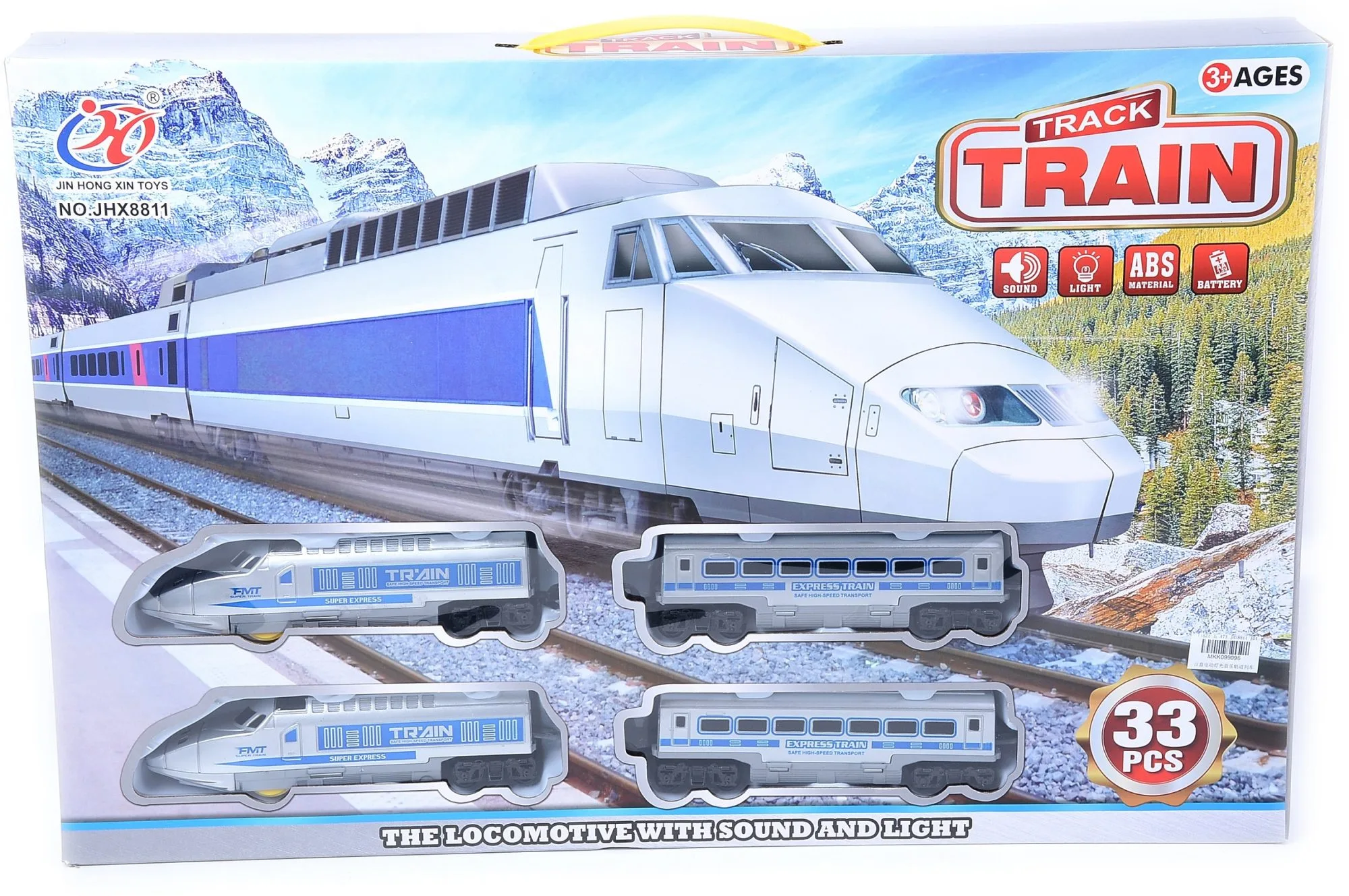 Περιλαμβάνονται 4 βαγόνια, τα οποία αναπαράγουν πραγματικούς ήχους τρένου και φως στον προβολέα. Ο σιδηρόδρομος μπορεί να σχηματιστεί με συνολικό μήκος 153 εκατοστά.