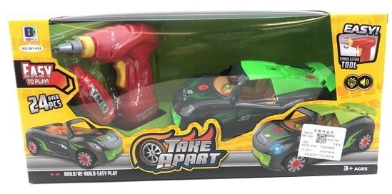 Ηλεκτρικό Τρυπάνι Και Αυτοκίνητο Με Φώς Take Apart Αυτοκίνητο που μετατρέπεται σε κάμπριο, με βιδολόγο για να το επισκευάσετε! Με ήχους και φώς! To αυτοκίνητο λειτουργεί με 2 μπαταρίες AG13 (περιλαμβάνονται) Το τρυπάνι λειτουργεί με 2 μπαταρίες ΑΑ (δεν περιλαμβάνονται)