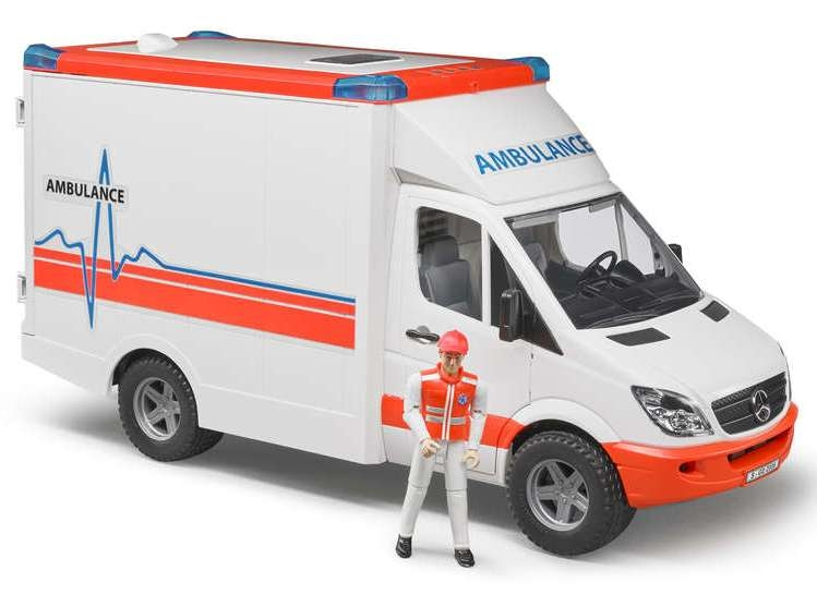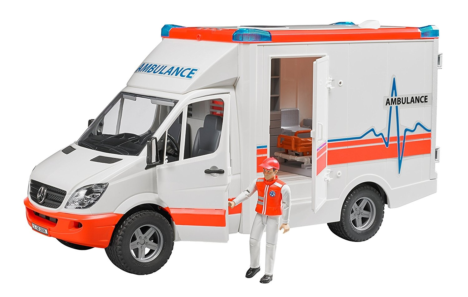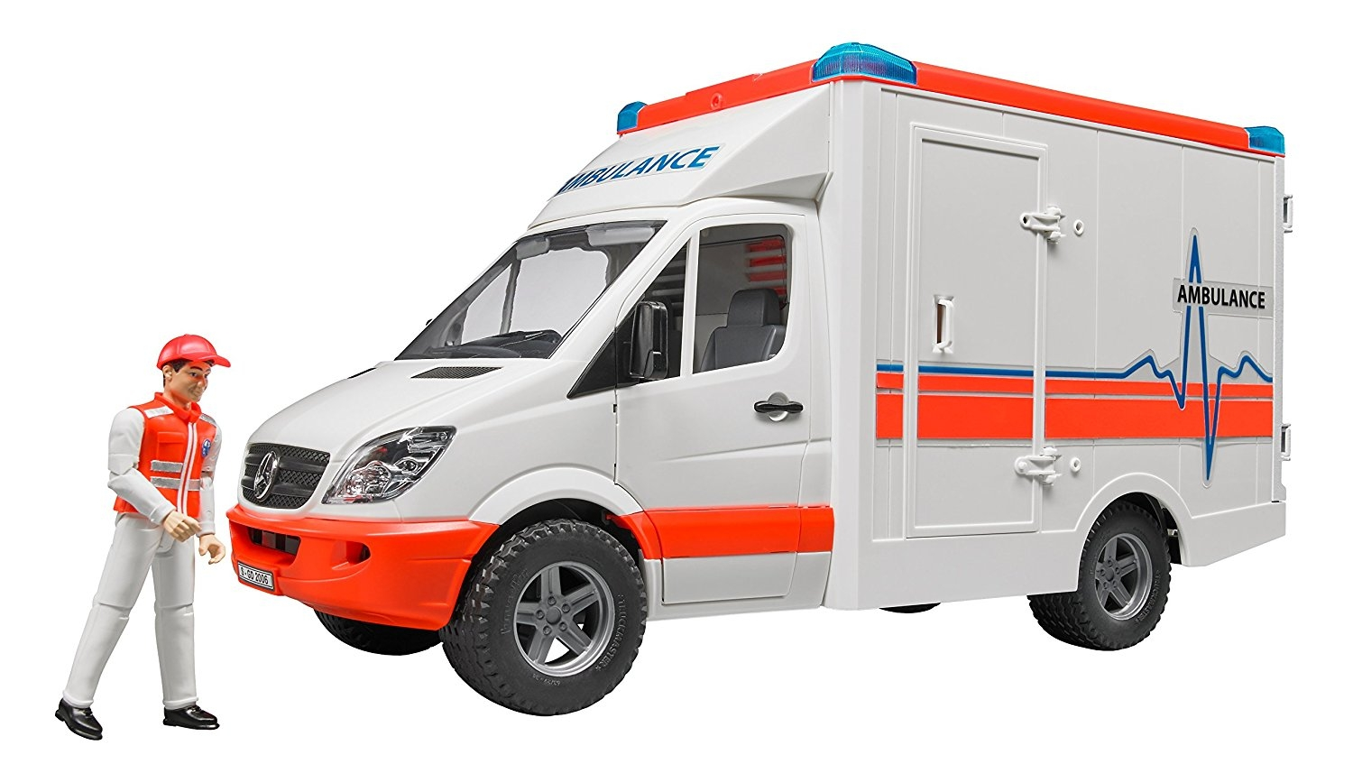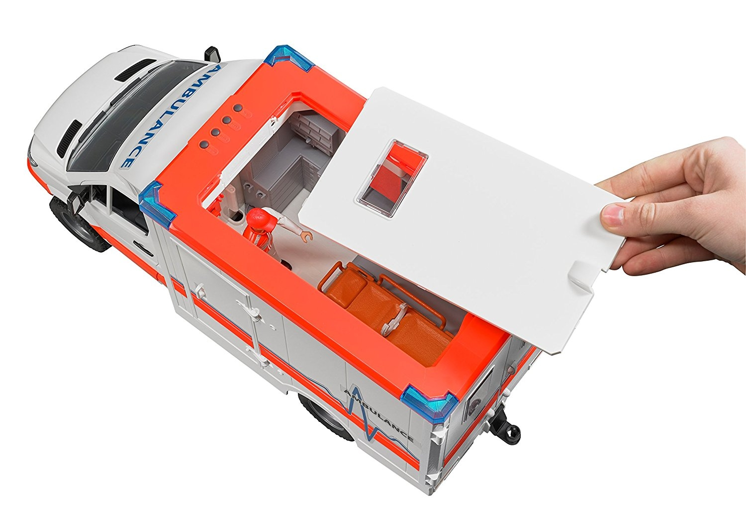 Bruder Ασθενοφόρο με οδηγό, κλίμακας 1:16 Διαστάσεις: 45.5x17x22εκ. (μήκος/ύψος/πλάτος) Κλίμακα: 1:16