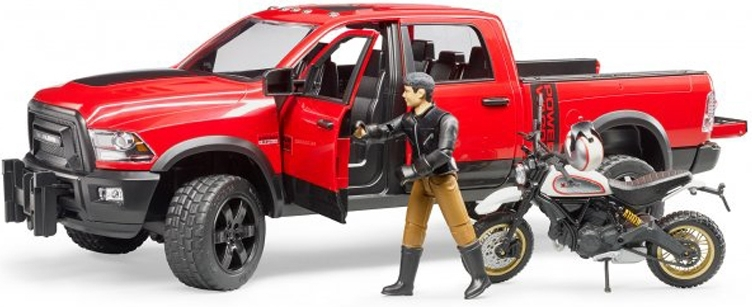 Bruder φορτηγάκι αγροτικό Ram με μηχανή Ducati off road και αναβάτη Φόρτωσε την μηχανή στην καρότσα του αγροτικού και ξεκίνα για τις πιο απίστευτες περιπέτειες!