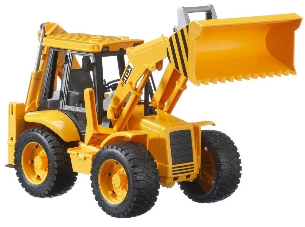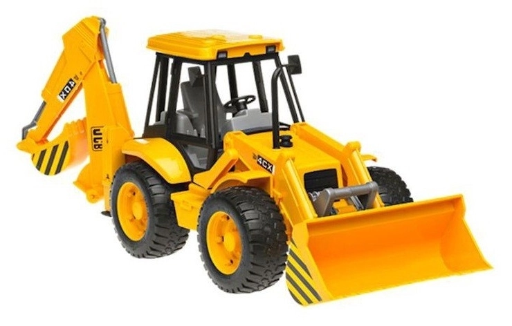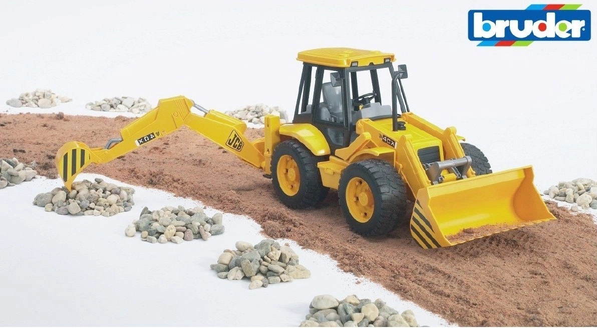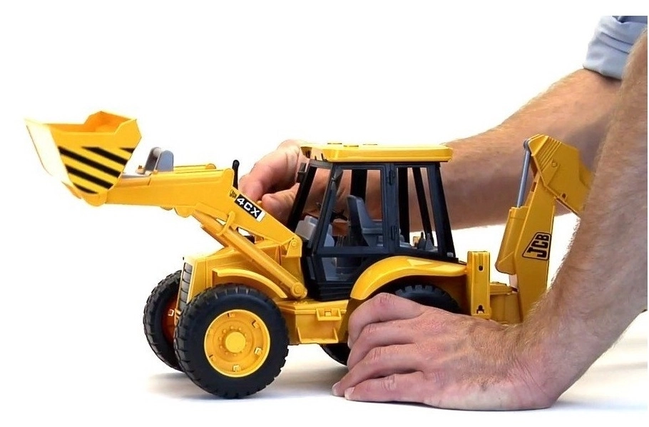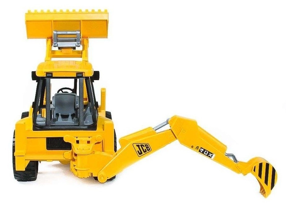 Bruder JCB εκσκαφέας με φαγάνα. Με περιστρεφόμενο κάθισμα οδηγού, με πόδια που εκτείνονται στο έδαφος για να σταθεροποιείται ο εκσκαφέας και με ρεαλιστικό πέλμα ελαστικών.