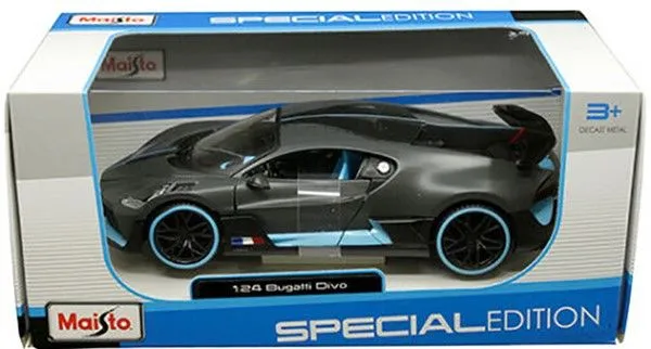 Maisto Special Edition 1:24 Bugatti Divo •Μεταλλικά αυτοκίνητα με λεπτομερή ακρίβεια αντιγραφής από τα πρωτότυπα μοντέλα! •Μεταλλικός σκελετός με πλαστικά εξαρτήματα •Ανοιγμένες πόρτες
