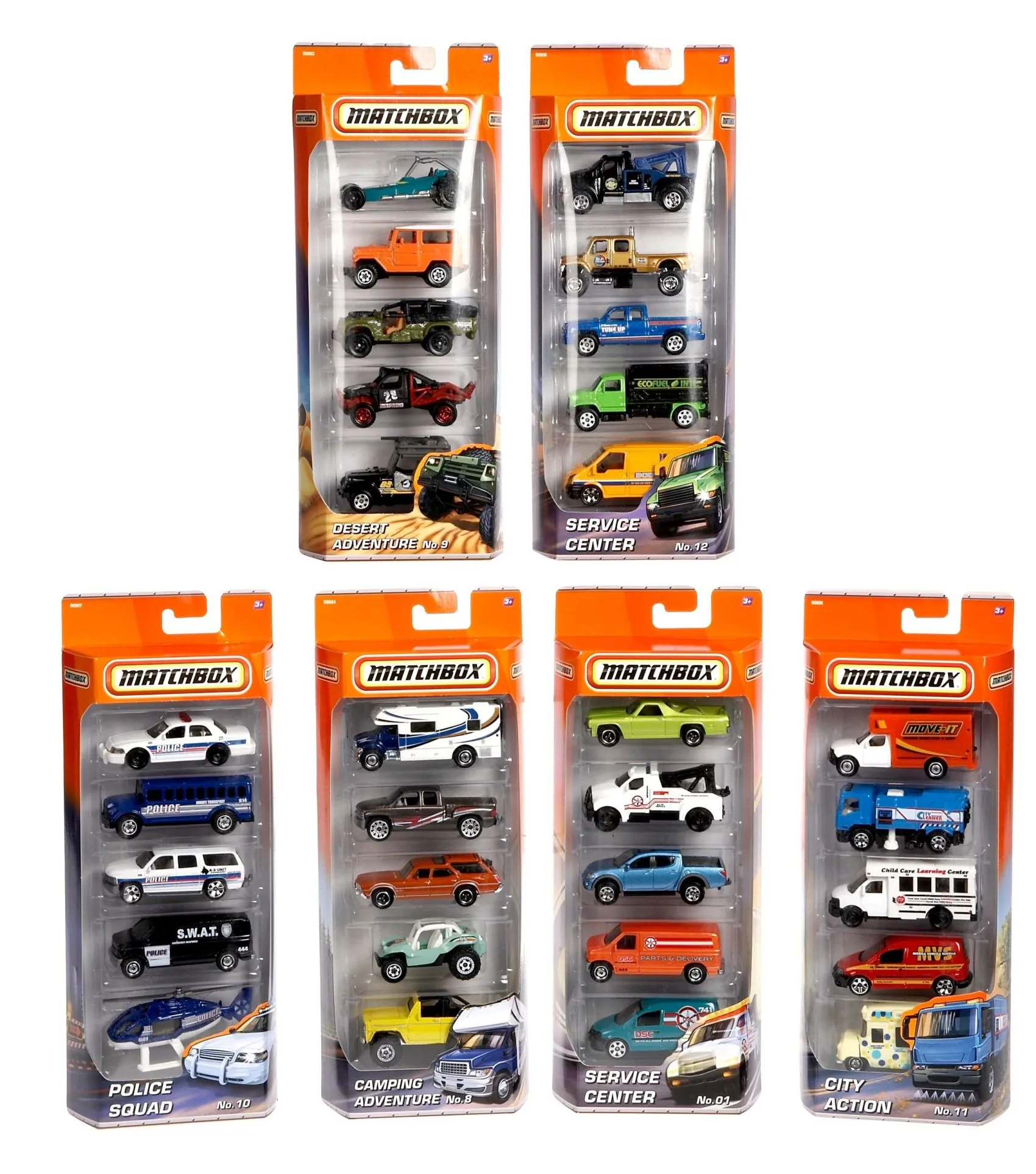 Matchbox Αυτοκινητακια Σετ Των 5 Τα κλασικά αυτοκινητάκια σε σετ των 5 τεμαχίων με θέματα όπως κατασκευές, κλασσικά, αστυνομικά ή αυτοκινητάκια εκτός δρόμου κτλ. *Διατίθεται σε διάφορους συνδιασμούς/ Η επιλογή γίνεται τυχαία