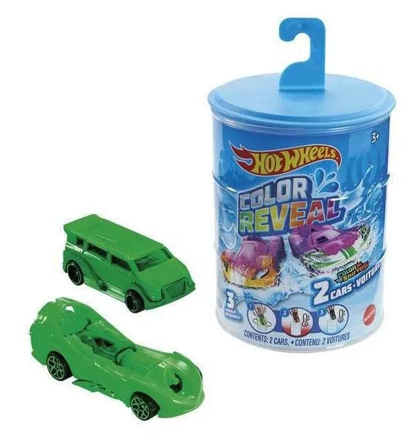 Hot Wheels Αυτοκινητάκια Reveal Car Colour Changing Σετ Των 2 Για την αρχική αποκάλυψη του οχήματος, γεμίστε τον κύλινδρο με νερό και στριφογυρίστε το αυτοκίνητο μέχρι το νερό να αλλάξει χρώμα! Βγάλτε το από το νερό για να αποκαλυφθούν τα απίθανα σχέδια! Αλλάξτε ξανά την εμφάνιση του αυτοκινήτου βουτώντας το…
