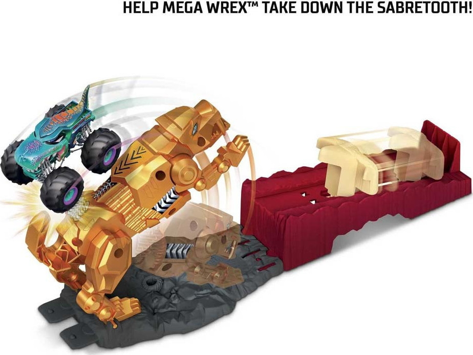 Hot Wheels Monster Trucks Sabertooth Showdown Τα σετ παιχνιδιού Hot Wheels® Monster Trucks Hero Play επιτρέπουν στα παιδιά να κάνουν μάχες μεταξύ άγριων πλασμάτων και των ηρωικών αντιπάλων τους! Τα παιδιά μπορούν να αναπτύξουν τις δεξιότητές τους καθώς βάζουν στη μάχη το συμπεριλαμβανόμενο όχημα κλίμακας 1:64 και αντιμετωπίζουν την πρόκληση…