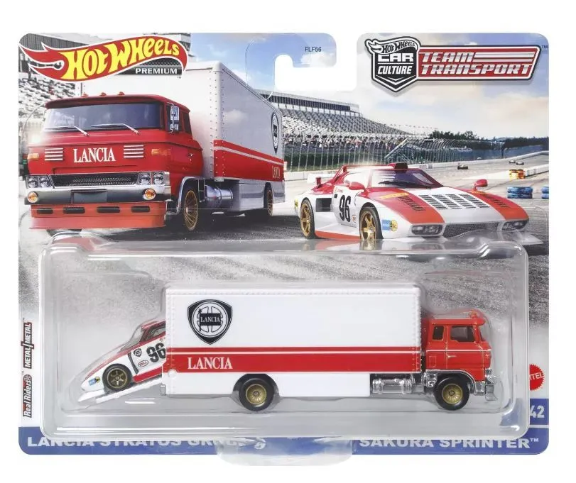 Hot Wheels Νταλίκα Με Αυτοκινητάκι Lancia Stratos and Sakura Sprinter Real Riders Αυτοκινητάκια Hot Wheels κλίμακας 1:64 σε διάφορα σχέδια με ρεαλιστικές λεπτομέρειες. Περιλαμβάνει συλλεκτικά αυτοκινητάκια από σειρές Car Culture, Pop Culture, Replica Entertainment, and Team Transports για τα 50 χρόνια Hot Wheels.