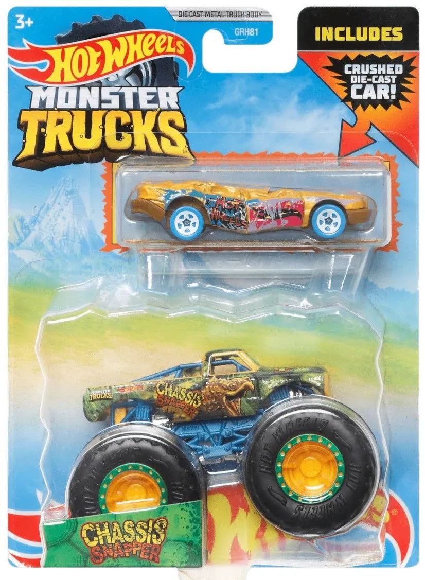 Hot Wheels Οχήματα Monster Trucks 1:64 Chassis Snapper Aυτά τα οχήματα Hot Wheels Monster Trucks κλίμακας 1:64 είναι ιδανικά για συναρπαστικούς αγώνες και συγκρούσεις! Κάθε σετ περιλαμβάνει μεταλλικό όχημα Hot Wheels σε ασορτί σχεδιασμό ώστε και τα δύο να μπορούν να αντιμετωπίσουν τις συγκρούσεις. Κάθε συσκευασία έχει πληροφορίες, όπως όνομα,…