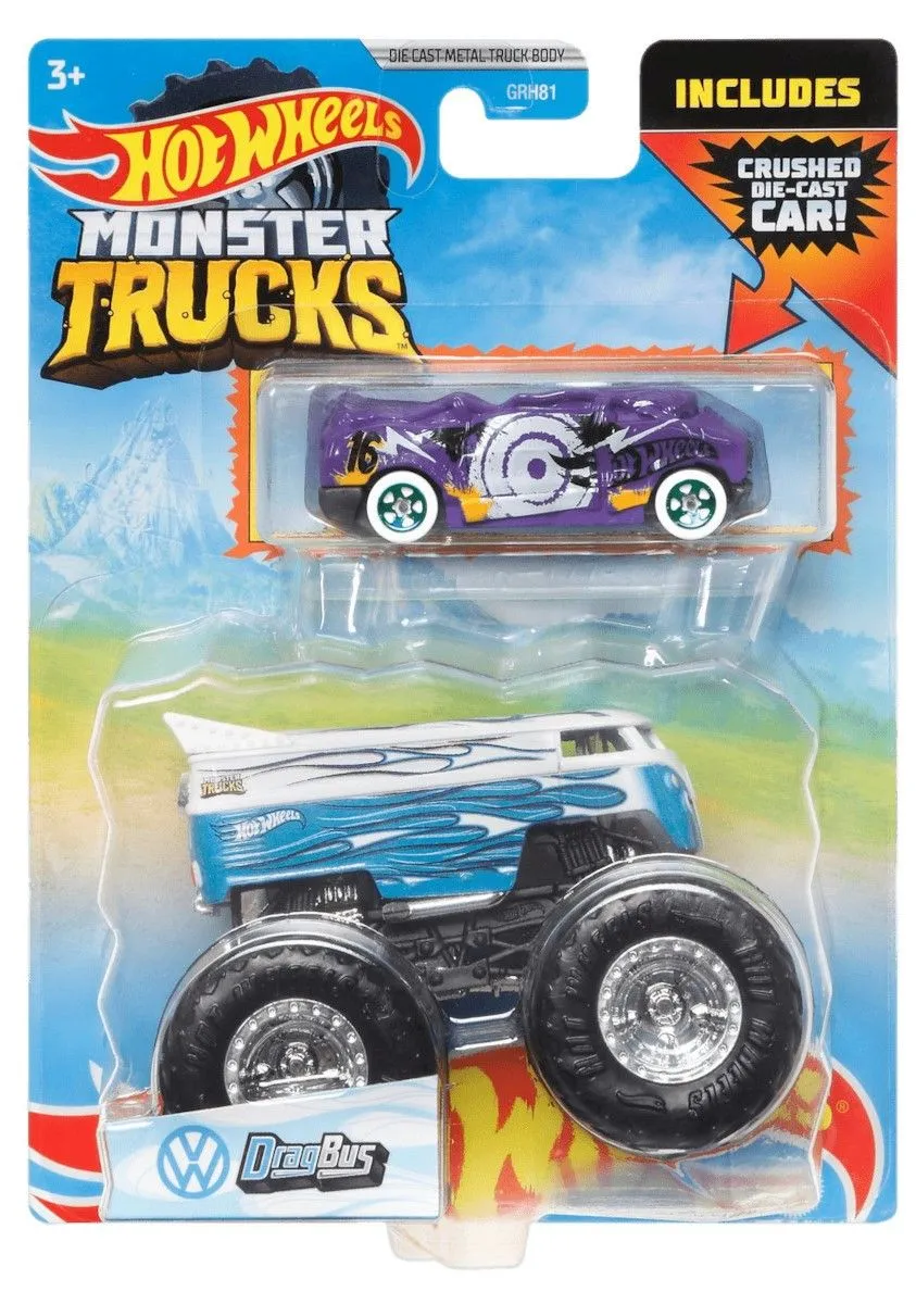 Hot Wheels Οχήματα Monster Trucks 1:64 Dragbus Aυτά τα οχήματα Hot Wheels Monster Trucks κλίμακας 1:64 είναι ιδανικά για συναρπαστικούς αγώνες και συγκρούσεις! Κάθε σετ περιλαμβάνει μεταλλικό όχημα Hot Wheels σε ασορτί σχεδιασμό ώστε και τα δύο να μπορούν να αντιμετωπίσουν τις συγκρούσεις. Κάθε συσκευασία έχει πληροφορίες, όπως όνομα, τύπο…