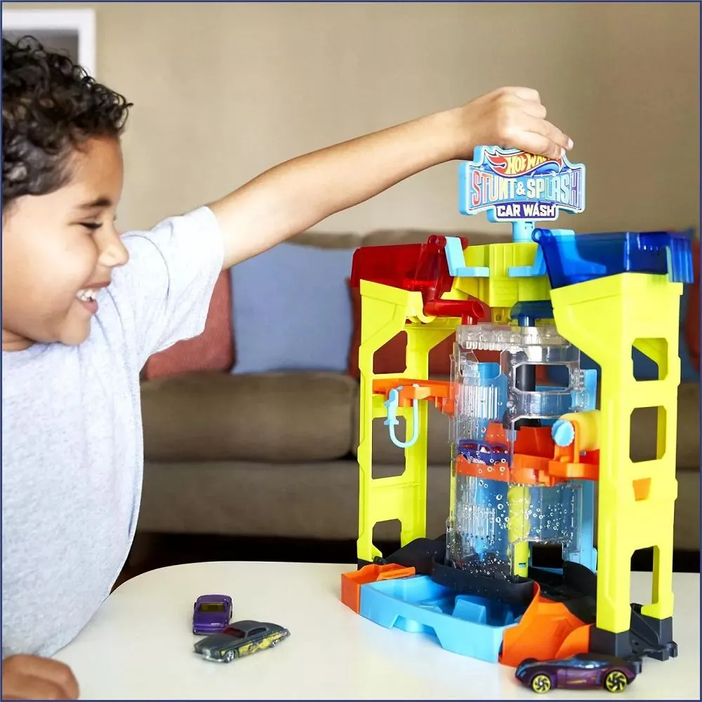 Hot Wheels Πλυντήριο Χρωμοκεραυνών Το Πλυντήριο Χρωμοκεραυνών Hot Wheels συνδυάζει τα χαρακτηριστικά ενός πραγματικού πλυντηρίου αυτοκινήτων με τη δράση των Hot Wheels. Ένα ασανσέρ μεταφέρει τα αυτοκίνητα μέσω ενός σύνθετου συστήματος που οδηγεί σε έναν αγωγό όπου τα παιδιά ρίχνουν νερό στα αυτοκίνητα. Τα παιδιά ελέγχουν εάν το νερό είναι…