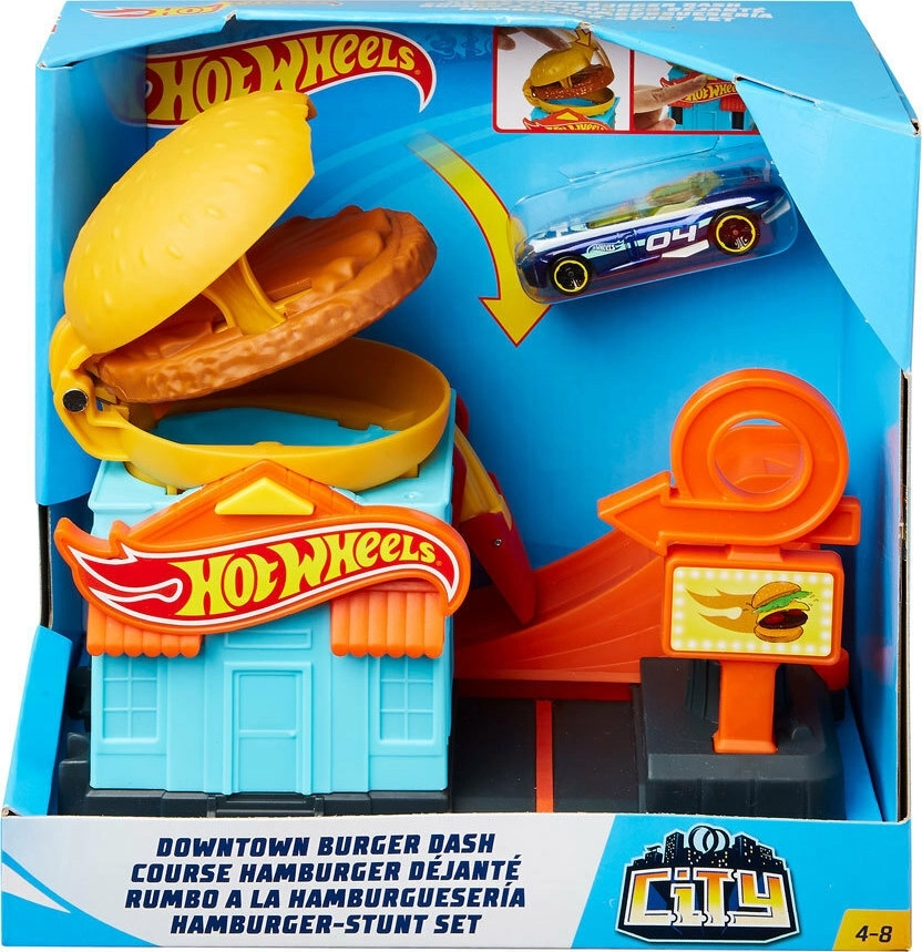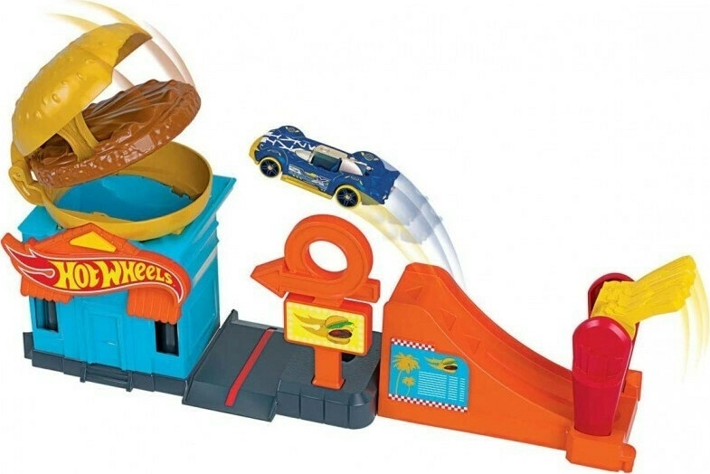 Hot Wheels Βασικές Πίστες City Hamburger Shop Play Set Περιλαμβάνεται ένα όχημα Hot Wheels και πίστα Robo Beasts Downtown Burger Dash Κατάλληλο για παιδιά ηλικίας από 4+ ετών
