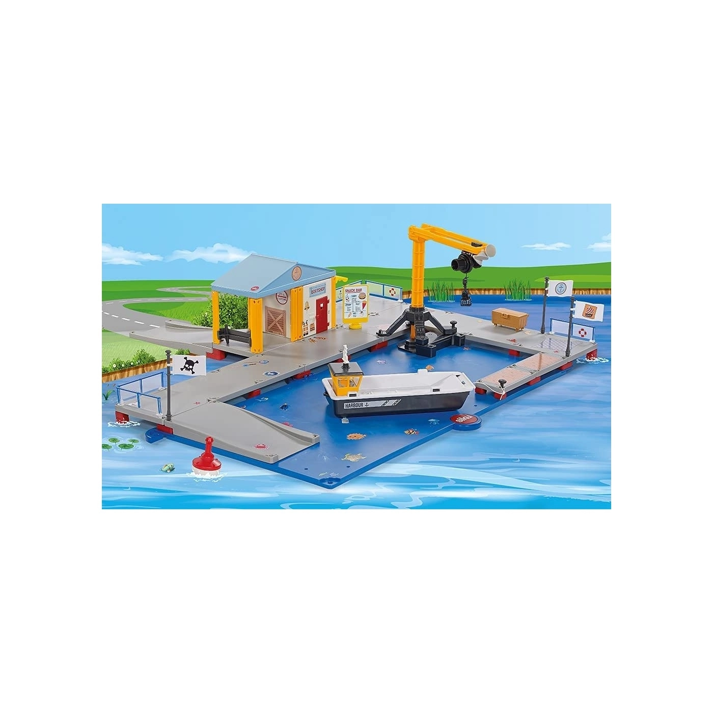 Siku Πίστα Αποβάθρα Με Πλοίο Και Εξοπλισμό με 65 αυτοκόλλητα! Περιστρεφόμενος γερανός για να φορτώνετε και να ξεφορτώνετε τα πλοία!
